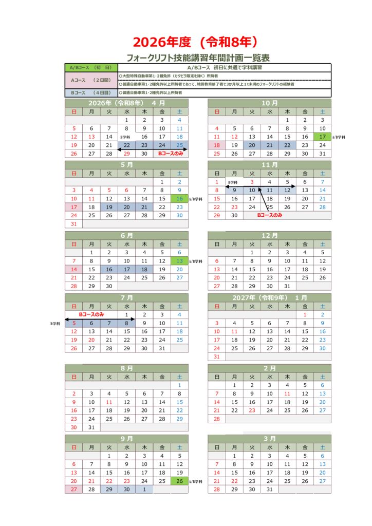 - 受講したいコースと日程を講習計画カレンダーでご確認いただき、講習希望日をお電話にてお問い合わせください。