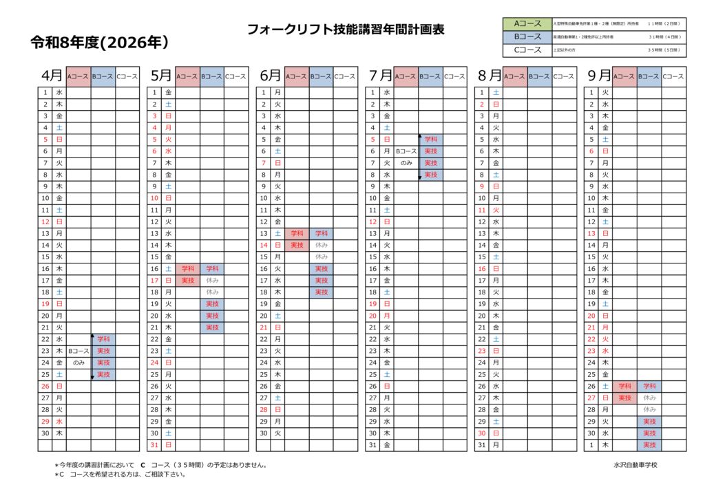 - 技能講習において、著しい天候悪化の場合には日時を変更する場合があります。